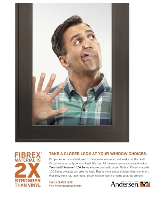 Andersen is big in the Midwest and the Northeast where winters are cold and where people like windows with wood interiors. In Texas, however, it’s a different story. Most people in Texas had heard of Andersen, but they didn’t think Andersen had a product for their market. It turns out, Andersen’s 100 Series is ideal for that market. So we asked them to take a closer look at Andersen — literally.