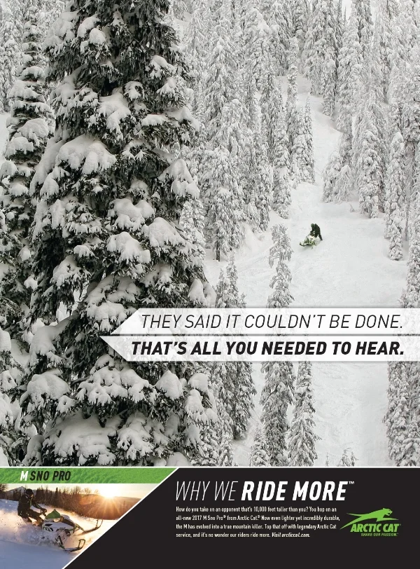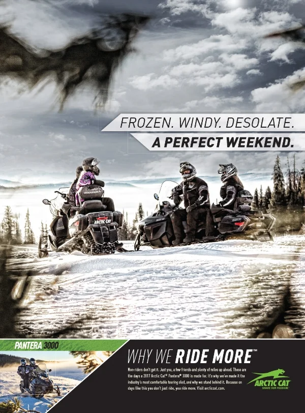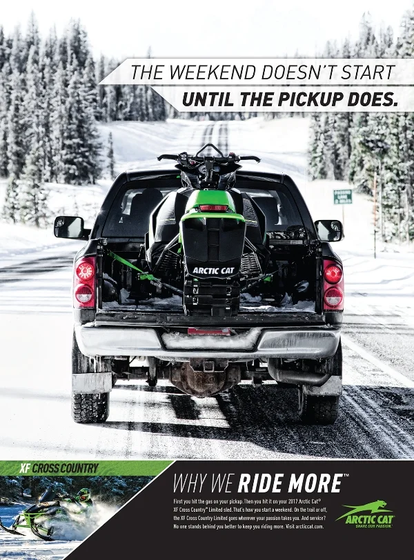 Arctic Cat understands how riders think about snow. They know how they feel when a big storm is coming in. They know how riders feel when they're putting their sled on a truck or a trailer. Instead of using traditional riding shots of sleds plowing through snow like most snowmobile makers do, we tapped into the feelings riders have about their sleds and about riding.